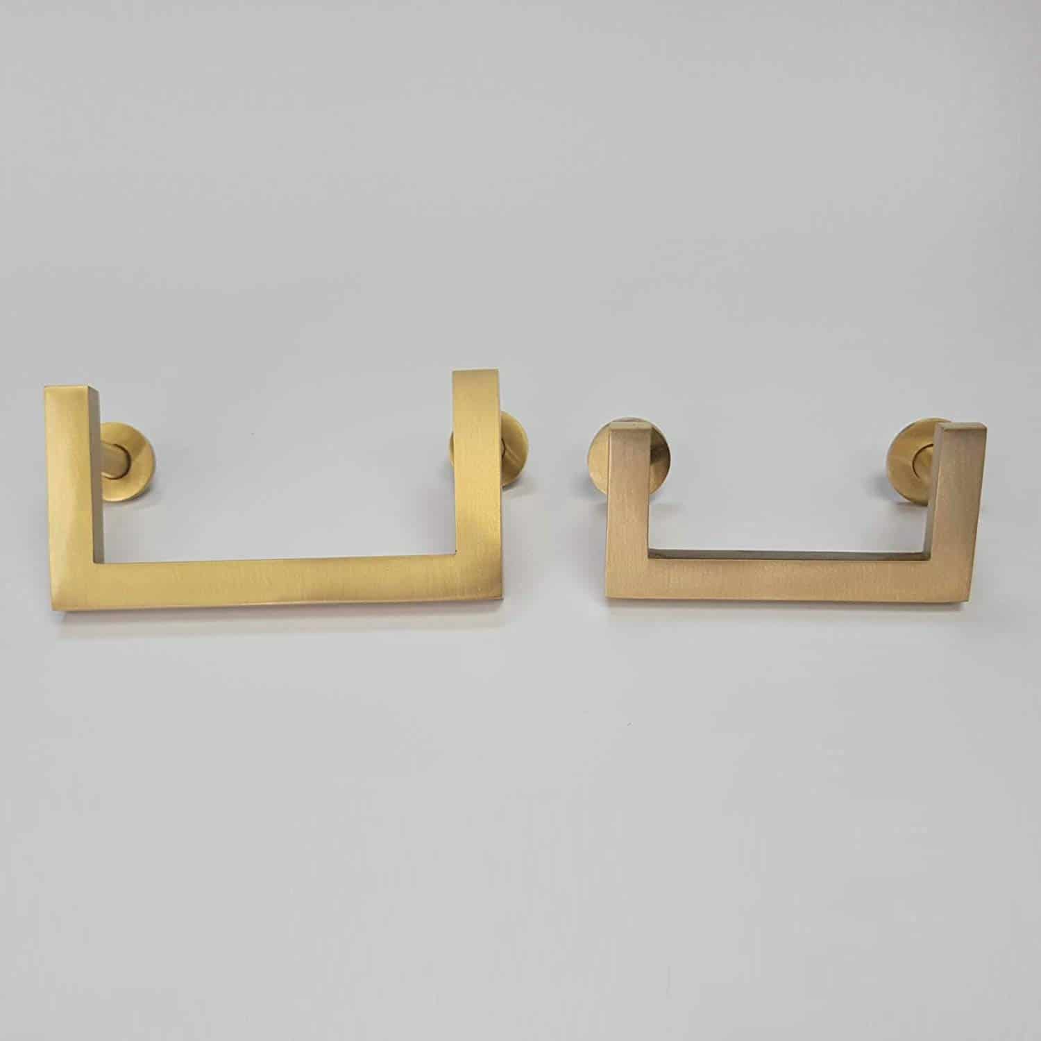 - Poignée de meuble demi-carrée de 10 cm (4 po), style tirette. Fabriquée et finie à la main.
