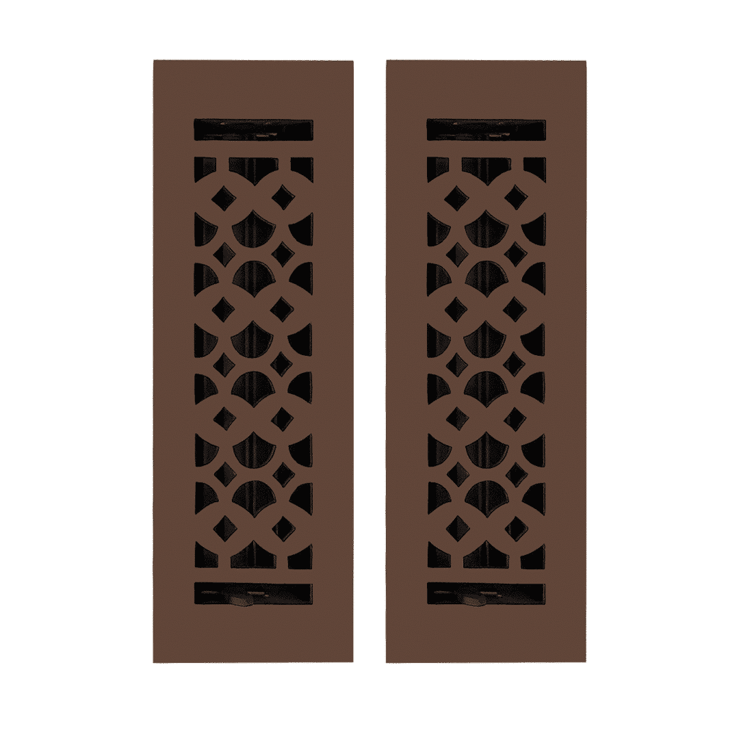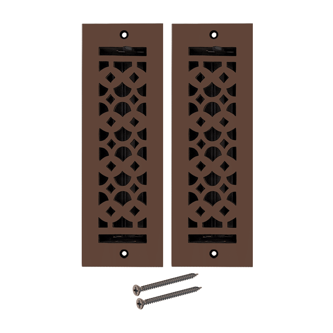 Les grilles de ventilation Prima Decorative Hardware sont des grilles de ventilation élégantes et de haute qualité, fabriquées à la main en aluminium moulé résistant et antirouille. Elles sont utilisées pour couvrir les ouvertures des conduits de ventilation des systèmes de climatisation, de chauffage et de CVC. Leur conception traditionnelle assure un flux d'air chaud ou froid silencieux et sans vibrations de votre système de climatisation central vers la pièce, tout en facilitant l'ouverture et la fermeture grâce aux registres intégrés à l'arrière. Fabriquées et finies à la main, nos grilles de ventilation de 7,6 x 25,4 cm (3 x 10 po) conviennent à la plupart des ouvertures de conduits d'air standard pour les sols, les murs et les plafonds, et sont destinées à une utilisation en intérieur. Fabriquées en aluminium moulé résistant, elles sont amovibles et réglables pour un flux d'air contrôlé et sécurisé. Nos grilles de ventilation sont conçues pour durer et apporteront une touche d'élégance moderne à n'importe quelle pièce. Leur nettoyage est très facile. Toutes nos grilles de ventilation sont thermolaquées et durables. Elles se nettoient simplement à la brosse. Si, après quelques années, vous constatez une différence de couleur, si elles deviennent ternes ou si vous souhaitez les changer, vous pouvez les repeindre avec une bombe de peinture métallique disponible dans le commerce. Ces grilles de ventilation sont en fonte, idéales pour les zones à fort trafic. Le même modèle est disponible pour les grilles de retour d'air de grande taille pour murs et plafonds, sans registres, avec trous fraisés et vis correspondantes.