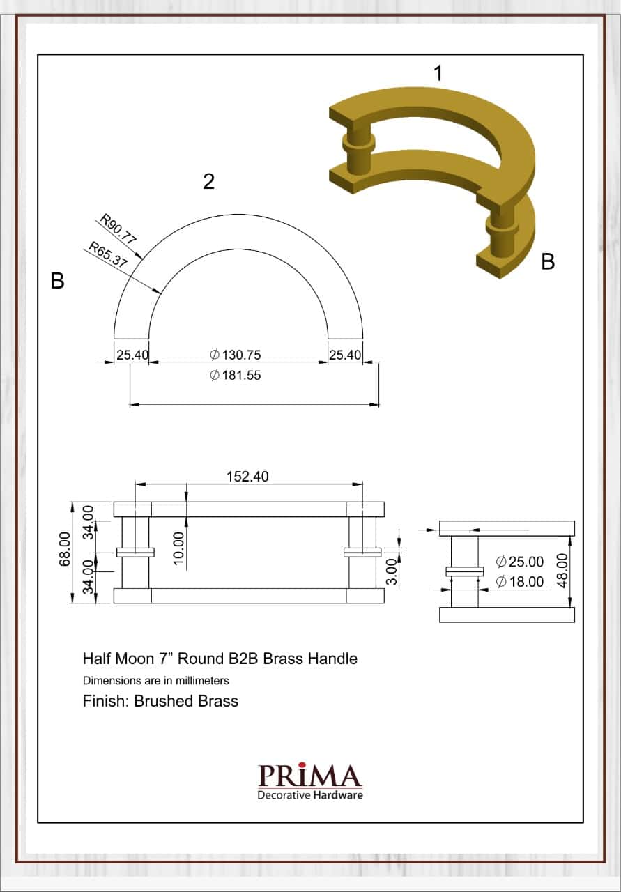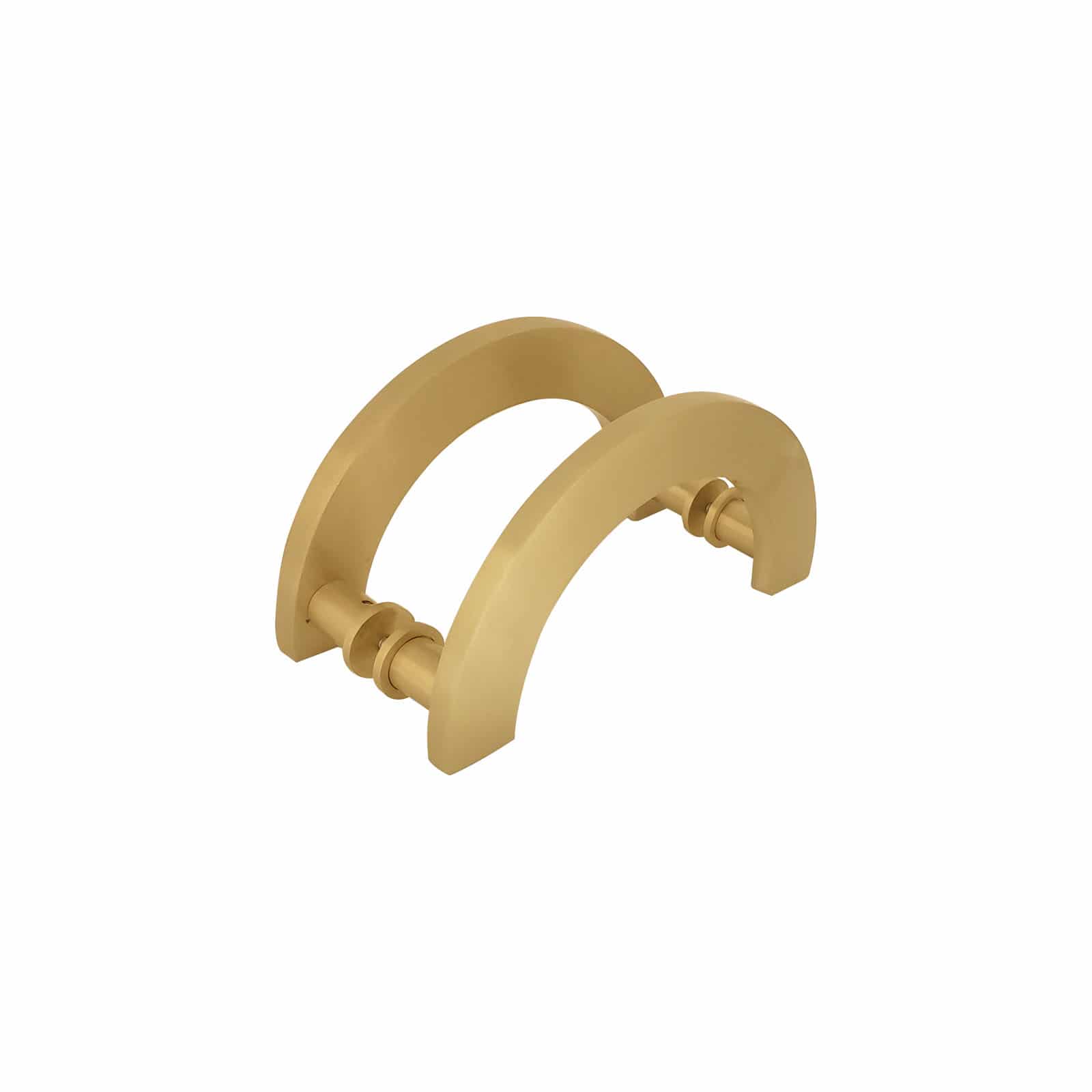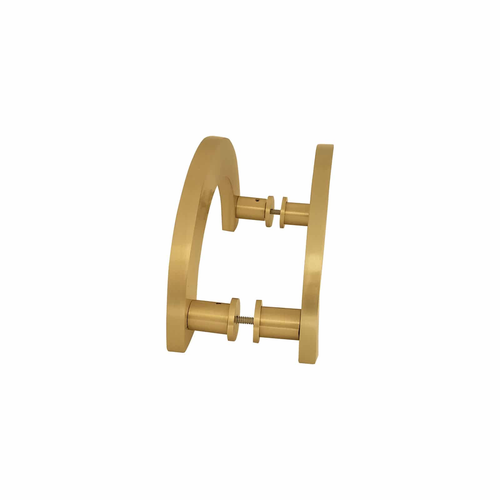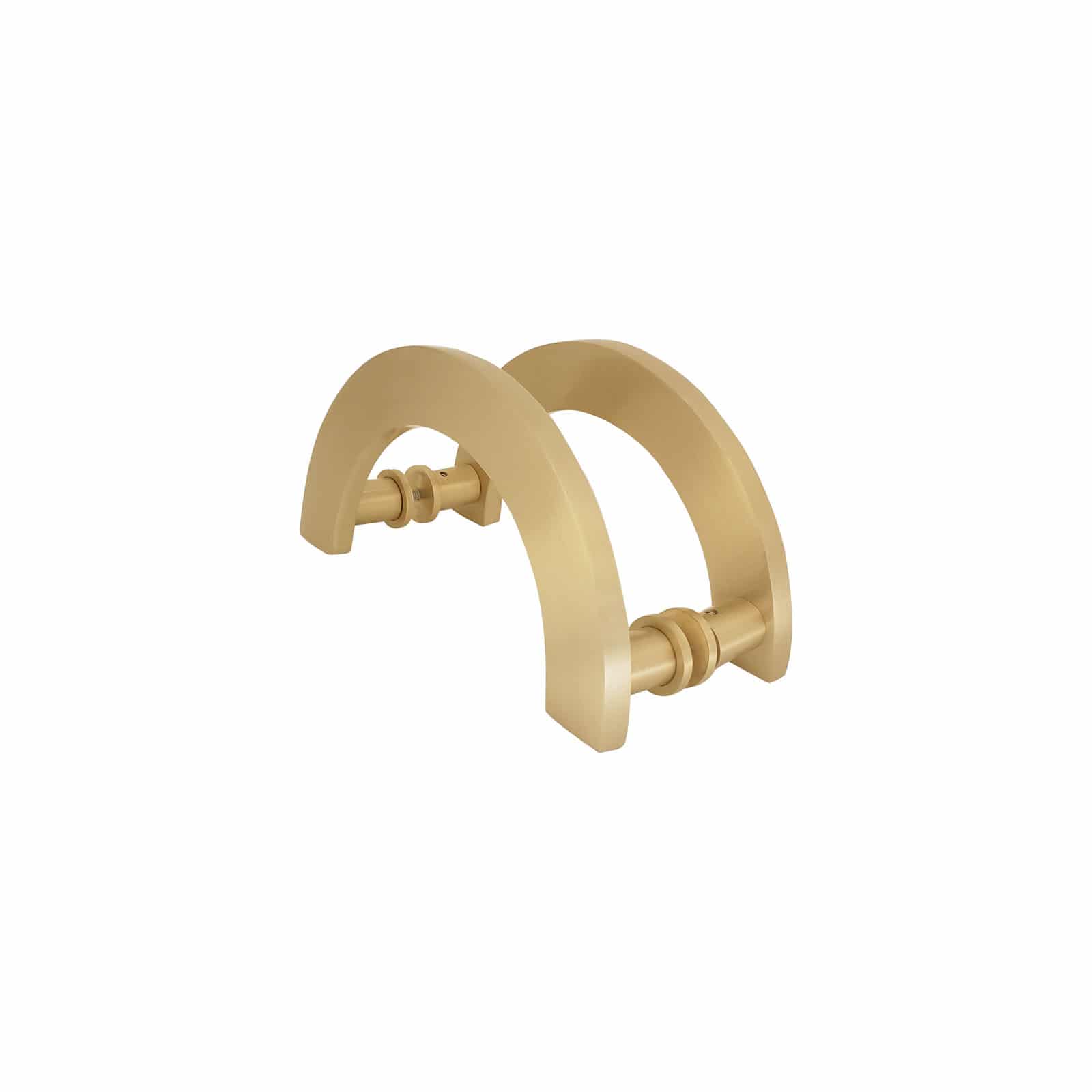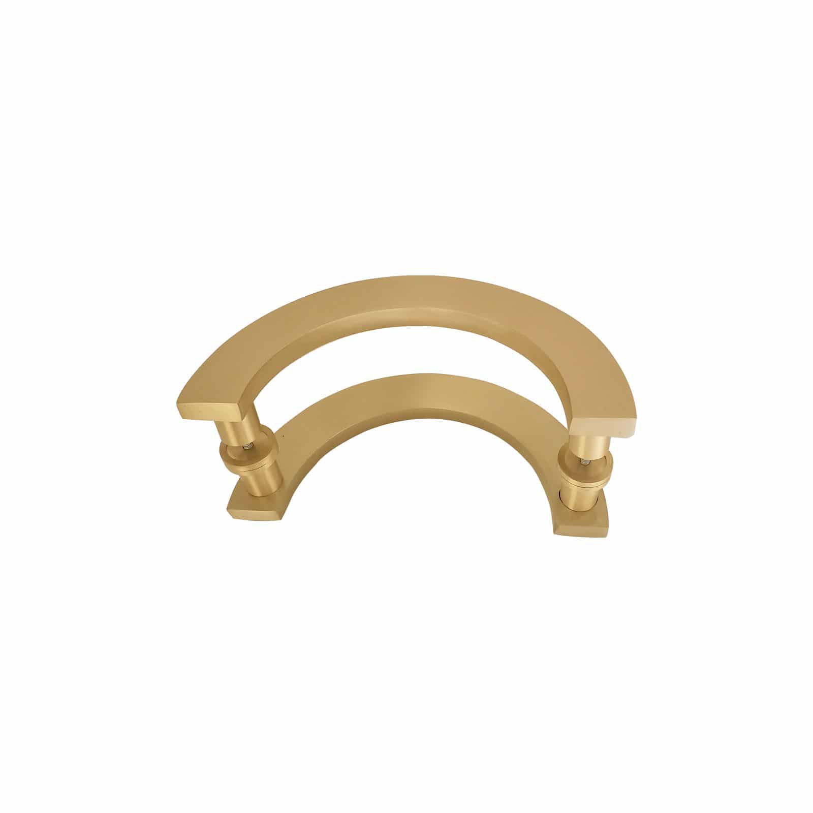 - Poignée de porte/armoire demi-cercle 18 cm, style tirette. Fabrication et finition artisanales. Montage dos à dos pour les deux côtés de la porte. Laiton massif moulé au sable.