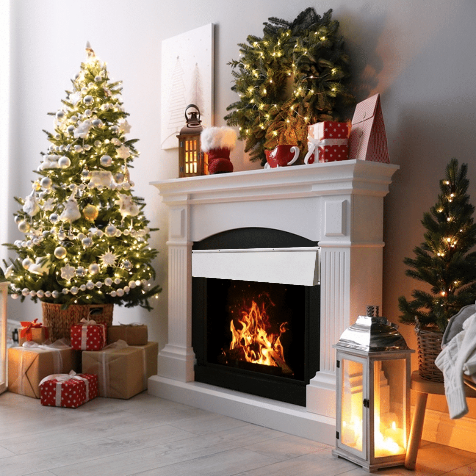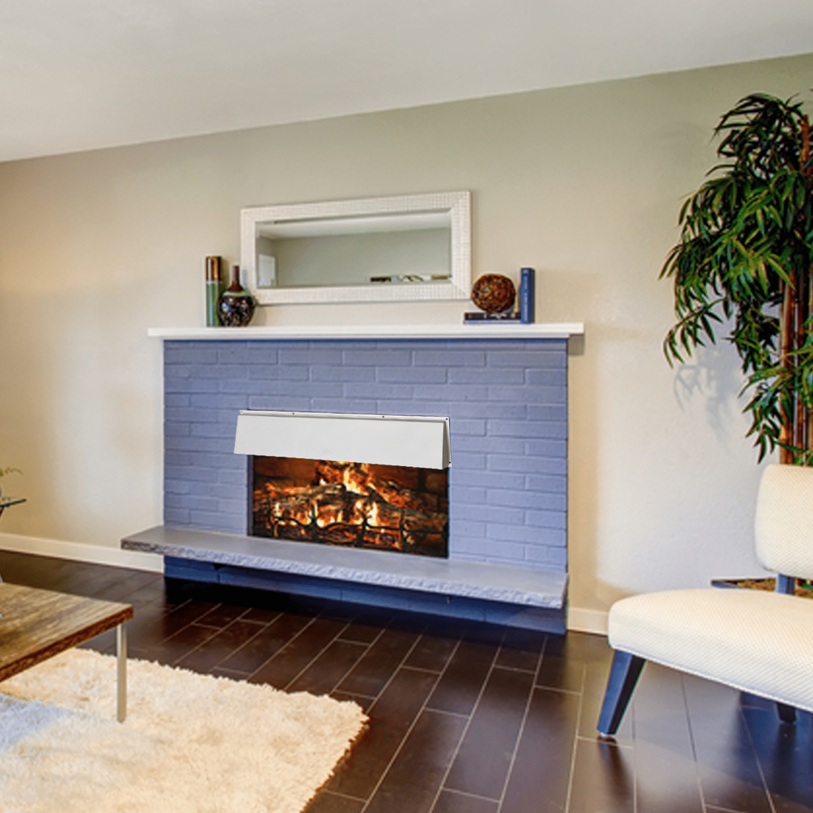 - Installation facile : des trous fraisés pré-percés et des vis adaptées permettent de fixer solidement le déflecteur au-dessus de la sortie d'air du foyer. Placez le déflecteur droit au-dessus de la sortie d'air du foyer et insérez les vis dans les trous du déflecteur à travers le mur à l'aide d'une perceuse ou d'un tournevis. Le tour est joué !