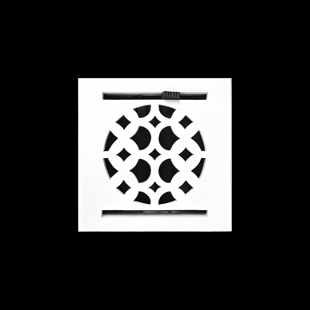 Air Vent Cover Round Vent Cover 4" | Cast Aluminum | Top square Faceplate 6"x6" with Damper at back for air control (Design VR100)
