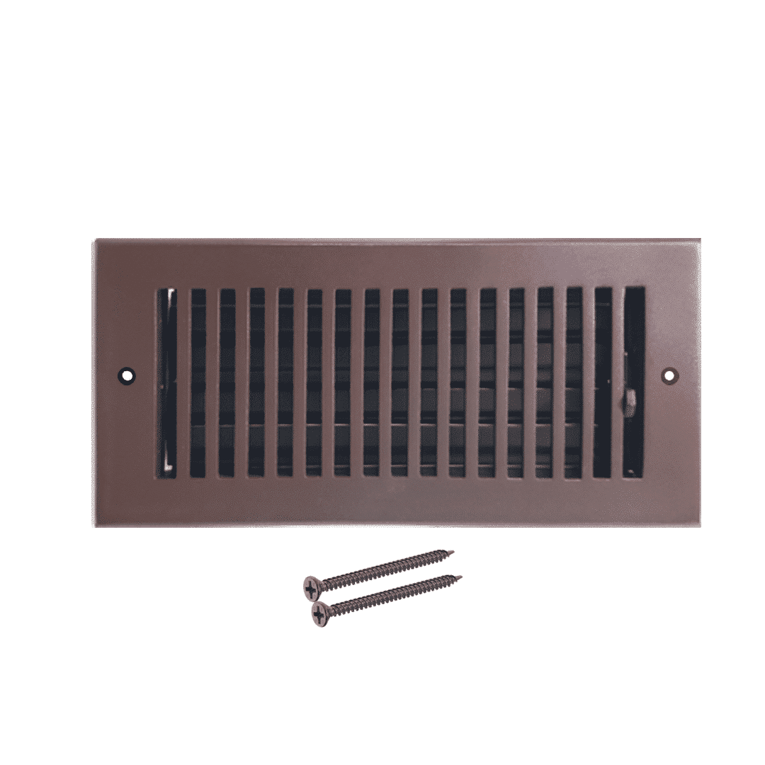 - Easy to Install: It is easy for any homeowner to install and maintain. Just drop it and insert it into the duct opening of the floor. No tools are required; this 102 Model has beveled edges to blend with any floor as a drop-in register mount. Floor registers can be installed on walls and ceiling; we provide predrilled counter sunk holes and matching screws and select holes or no holes as an option while placing an order. The floor register face plate sits above the Floor surface; it does not flush with the Floor.