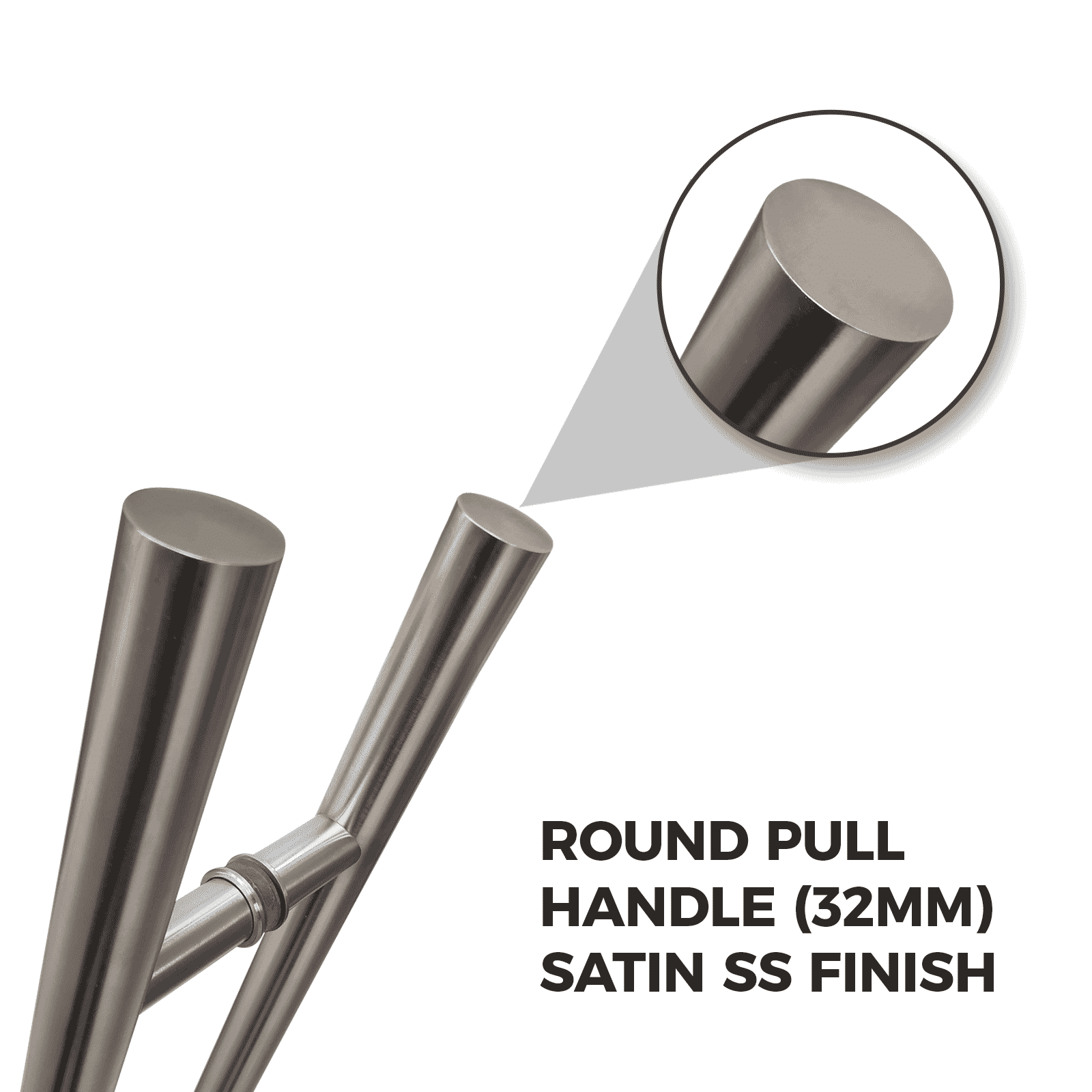 - Entry Door Pull Long Handle Round ‘H’ Shape /Ladder style 18” Back-to-Back. Stainless Steel, Push and Pull Long Handle for Wood, Fiber Glass, Steel, and Glass interior/exterior front doors, shower glass doors, and Pivot doors. Designed for both residential and commercial use,