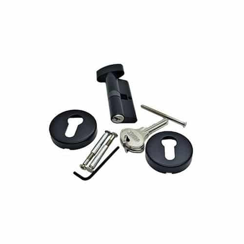 Includes one Euro cylinder ,One long screw ,Three keys , Mounting screws ,Round Rosette Set