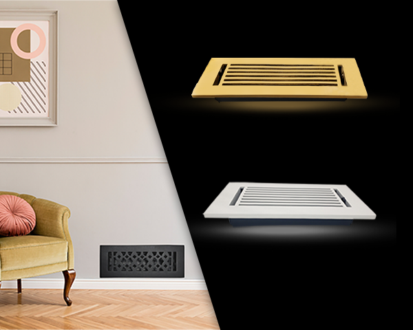 Finishes: The floor register comes in various finishes to match any décor. It is made of cast aluminum rust-free material, and the baked-on powder coat fine-grain matte finish provides extra protection that lasts a long time. It can be re-painted using metal spray paint of any color to match your décor. We make custom sizes.