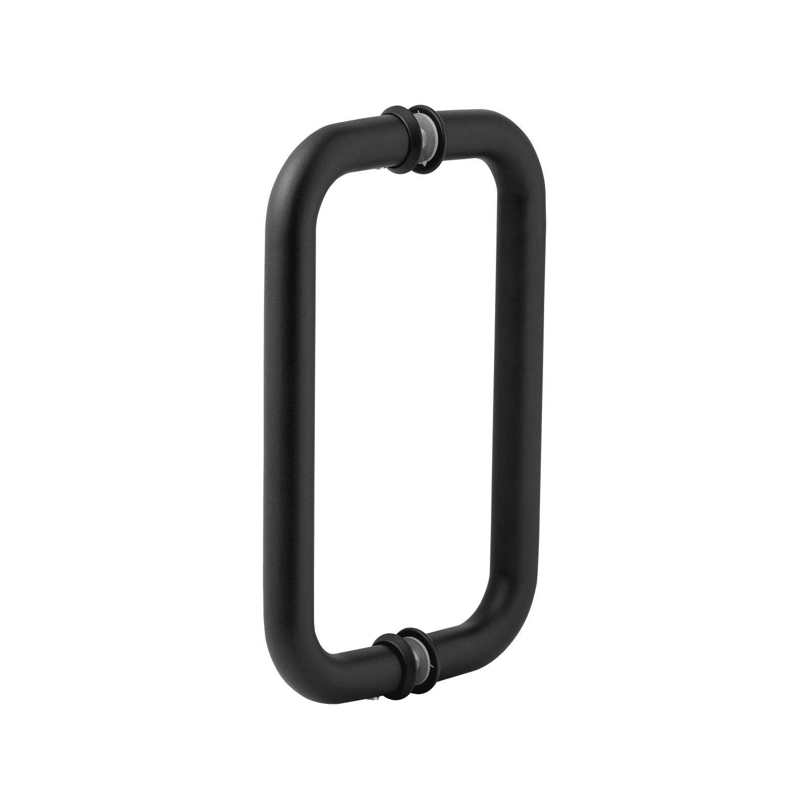- Shower/Glass Door Pull Handle 8” Back-to-back Tubular Round Bar 19mm diameter, Centre 2 center Holes 8″ (200mm), Total length 219 mm, Projection 64mm center Handle on both sides. Sleek Modern design. Designed for functionality, durability, and aesthetics.